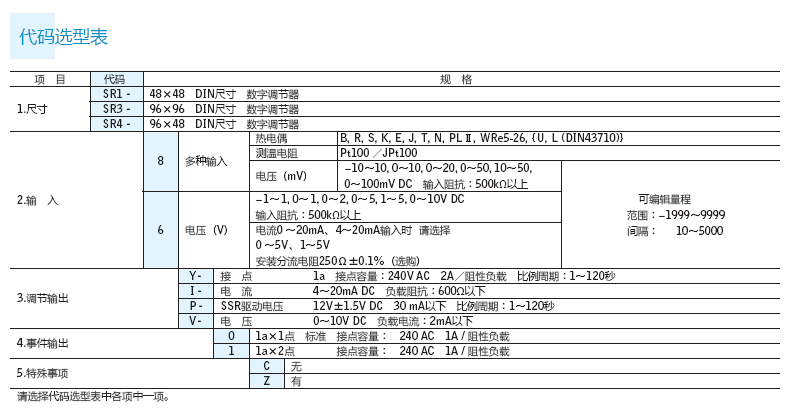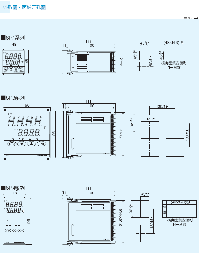 尺寸48×48mm (SR1)、96×96mm (SR3)、96×48 (SR4) 3種類