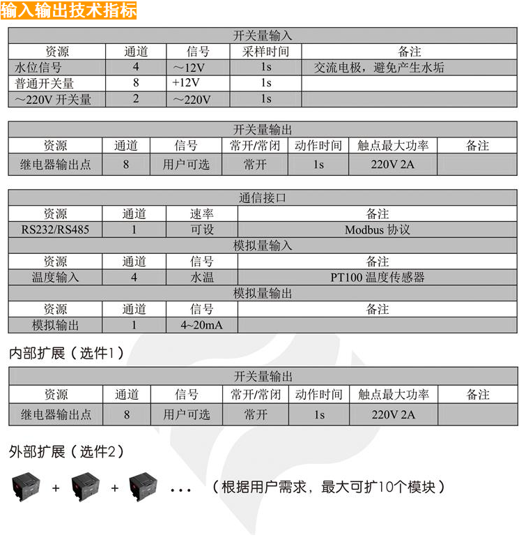 擴(kuò)展功能:根據(jù)用戶需求可進(jìn)行內(nèi)部及外部擴(kuò)展。(詳見(jiàn)輸入輸出表)